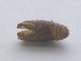 ![]() Empty pupa case. The adult moth emerges from the case after completing metamorphosis. |